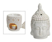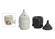 Duftlampe Buddha aus Keramik, weiß, für Teelichter, Ausführung mit abnehmbarem Duftdeckel, 20 x 11 x 11 cm