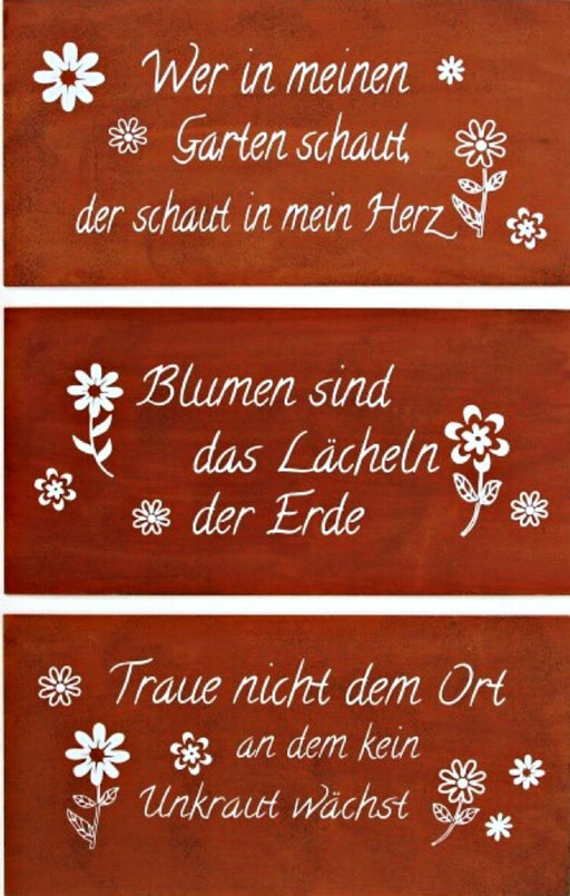 Vollständige Details anzeigenGrosses Gartenschild aus Eisen rostbraun, top angesagt, im Blumen Vintage Stil. Modell: BLUMEN SIND DAS LÄCHELN DER ERDE Metallschild mit Sprüchen,...