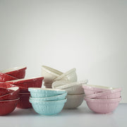 Das markant gemusterte Äußere und die 4 ansprechenden Farbtöne rot, cremeweiß, hellblau und pastellrosa machen diese Rührschüssel zum absoluten Hingucker.