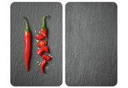 Schieferoptik, Inhalt: 1 x uni, 1 x mit Motiv "Chilis", kratzfeste, porenfreie hygienische Oberfläche, robust und schlagfest, geruchsneutral, hitzebeständig bis 200 °C, 8 rutschfeste Füße in unterschiedlichen Höhen für verschiedene Herdarten, für Glaskeramik-, Elektro- und Gasherde geeignet···· (LxBxH): je 30x1,8-5,5x52 cm