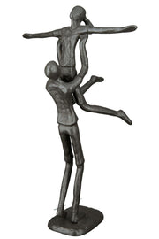 Große 24 cm hohe Design Figur, Skulptur mit Umsetzungsmotto, HEBEFIGUR, aus Eisen BRÜNIERT, durch kunstvollen Stil in Szene gesetzt, Größe 24 x 15 x 12 cm, tolle kreative Geschenkidee
