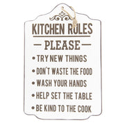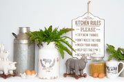Riesiges Vintage Retro Holzschild, Modell KITCHEN RULES , Material Holz , Maße 45 x 30 cm, weiss mit Naturbandaufhängung, ideal für Bar, Cafe oder einfach Zuhause