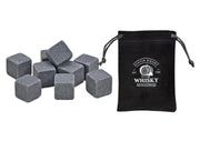 Whisky-Stein Set, 9 Stk. Eiswürfel aus Basalt-Stein 2x2x2cm in Basalt Grau, Set im stylischen Samtbeutel. Neidfaktor inclusive