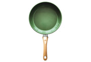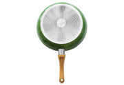 hochwertige Aluminium-Pfanne mit CeraVegan pflanzlicher Keramik-Antihaftbeschichtung auf Basis von Avocado-Öl, zum Braten und Kochen ohne Fett, kratzunempfindlich und robust, gleichmäßige Hitzeverteilung, kein Anbrennen und Anhaften, ideal zum scharfen Anbraten, Griff in Holzoptik, spülmaschinengeeignet, backofengeeignet bis 180 °C, für alle Herdarten geeignet·grün / braun Ø 20 cm