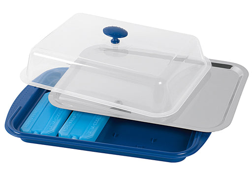 Kunststoff / Edelstahl, Inhalt: 1 x Schale aus stabilem Kunststoff, 1 x Edelstahl-Tablett rostfrei, 2 x Kühlakkus, 1 x Frischhaltehaube Polypropyle...