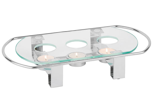3-flammig, Metall verchromt, mit hitzebeständiger Glasplatte, inkl. Teelicht·silber (LxBxH): 34x18x6 cm·