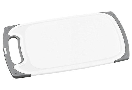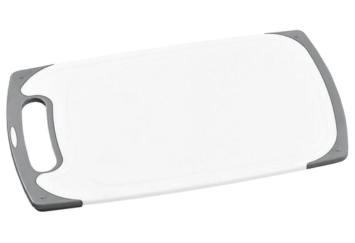Kunststoff, mit Rutschstopp, eine Spezialbeschichtung verhindert das Verrutschen des Brettes beim Schneiden, spülmaschinengeeignet·weiß / grau (LxB...
