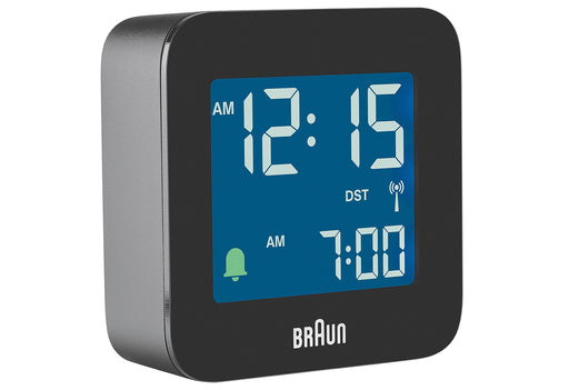 Kunststoff, automatische Zeiteinstellung, Weckwiederholung, Hintergrundbeleuchtung·schwarz (LxHxT): 7,5x7,5x4,5 cm
