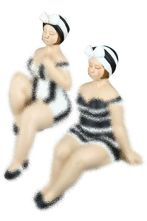 Vollständige Details anzeigenMotto Figurenset: " STRANDSCHÖNHEITEN " in schwarz weiß, zwei Badenixen als tolles Dekoset und Designfiguren.Top angesagt. Gefertigt als Kantensitz...