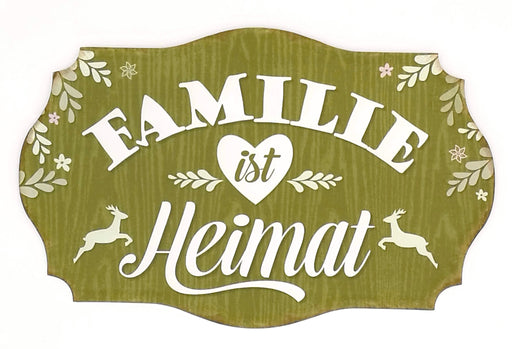 Vintage Retro Blechschild Land Stil, Modell: FAMILIE IST HEIMAT, Material Metall , Maße 31 x 19 cm, grün, ideal für Garten, Terrasse, Bar, Cafe, Cafeteria oder einfach Zuhause.