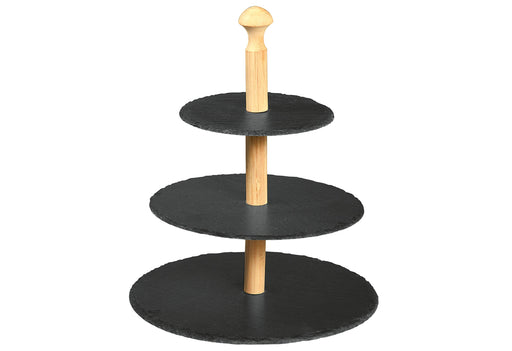 Servierplatten aus Schiefer / Stangen aus Bambus, Maße: obere Platte Ø 20 cm, mittlere Platte Ø 25 cm, untere Platte: Ø 30 cm·natur (BxHxT): 30x34x...