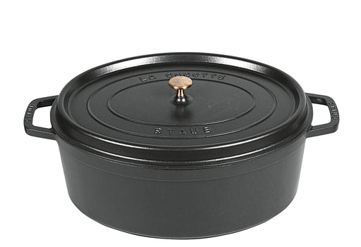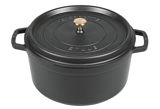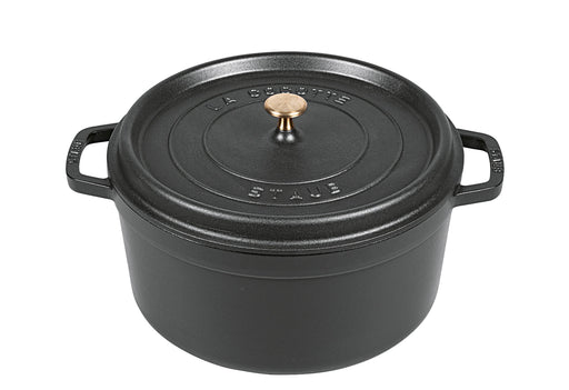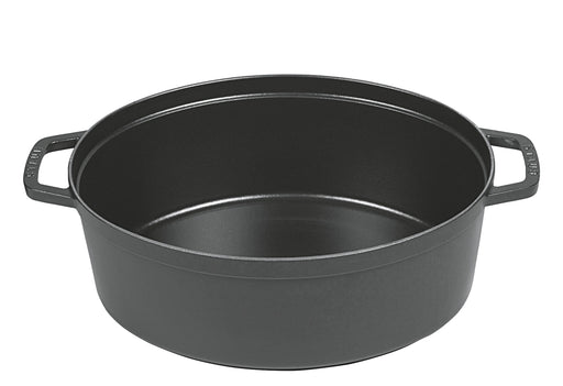 Gusseisen, speichert Wärme und gibt sie langsam und gleichmäßig wieder ab, sehr gut geeignet für schonendes und gesundes Garen, innen matt-schwarz ...