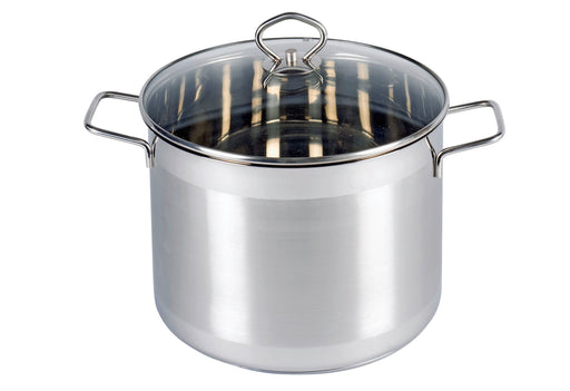 Edelstahl rostfrei, außen hochglanzpoliert, innen matt, Glasdeckel mit Edelstahlrand und Abdampfventil, wärmeabweisende Kaltmetallgriffe, Kapselbod...