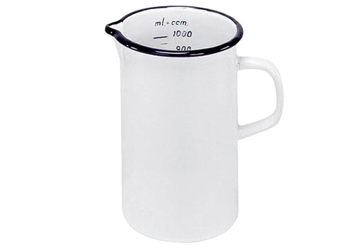 Emaille, Litermaß mit Einteilung 1/4 - 1/2 - 1 Liter·weiß 1 l, Ø 10 cm, H ca. 17 cm