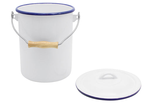 View full detailsemailliert, mit Deckel, Holzrolle am Tragegriff, vielseitig einsetzbar, auch für Öl, Asche etc.·weiß 3 l, Ø 16 cm, H 24,5 cm