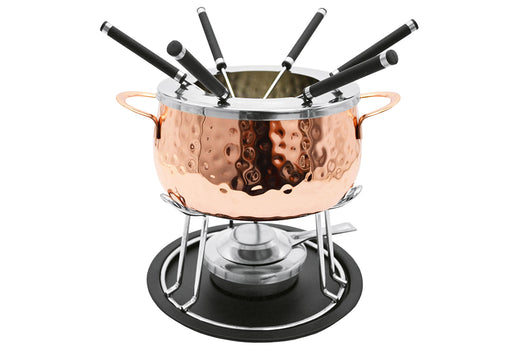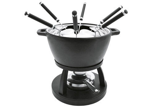 View full detailsEdelstahl / Kunststoff, Inhalt: 1 Fonduetopf, Ø 16 cm, 1 Spritzschutz, 1 Bodenplatte, 1 Fonduebrenner, 6 Fonduegabeln 18/0 mit schwarzem Plastikgr...