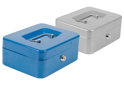 View full detailsStahl lackiert, mit Henkel, 2 Schlüsseln und praktischem Einsatz zum einfachen, übersichtlichen Verstauen von Münzgeld·grau, blau (LxBxH): 15x8x12 cm