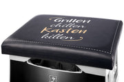 Outdoor Hocker Bierkiste, Sitzaufsatz Modell: GRILLEN CHILLEN KASTEN KILLEN, Material Kunstleder, Maße 42 x 30 x 5 cm, Farbe schwarz, ideal für Garten, Bar, Cafe, oder einfach Zuhause.