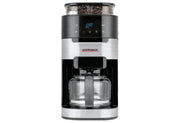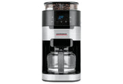 Filterkaffeemaschine mit integriertem Mahlwerk, Tassenanzahl: 12 Tassen, 1,5 Liter Glaskanne, 250 g Bohnenbehälter, Kegelmahlwerk mit 8 Mahlstufen für frisch gemahlenen Kaffee, Auswahl der gewünschten Kaffeestärke: mild, mittel oder stark, auch für bereits gemahlenes Kaffeepulver verwendbar, Soft-Touch LCD-Display, 24 h programmierbare Timerfunktion, 30 min Warmhaltefunktion mit Abschaltautomatik, Schwenkfilterhalter mit Tropf-Stopp Funktion, inklusive Dauerfilter, auch für Filtertüten (Größe 1 x 4) geeignet, Wasserstandsanzeige für einfaches Auffüllen, 900 Watt Leistung, Schukostecker CEE 7/7·schwarz/silber 21,3x43x31,4 cm