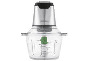 Messerset mit 3 Edelstahl-Sichelmessern, als 2-fach, 4-fach oder 6-fach Messer verwendbar, 1,2 Liter Glasbehälter mit Griffen, Deckel und Anti-Rutsch-Fuß, Glasbehälter, Deckel und Messerset sind spülmaschinengeeignet, Länge des Netzkabels: ca. 105 cm, Fassungsvermögen: 600 ml (20 oz. bzw. 2,5 Tassen) - Flüssigkeiten: 400 ml - schäumende Lebensmittel: 200 ml, Leistung 400 Watt, Eurostecker CEE 7/17