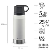 Die aladdin Thermoskanne ist ideal für die Mitnahme von heißen und eisgekühlten Getränken. Das große Fassungsvermögen und die Edelstahl-Doppelwand-Thermavac?-Isolierung halten die Getränke in dieser stylischen Isolierkanne besonders lange heiß - bis 25 Stunden und kalt - bis zu 5 Tage eisgekühlt. Das durchdachte Design ? 2in1 Becher, leichtes Öffnen per Druckknopf und die griffige Oberfläche sorgen für höchsten Komfort bei der täglichen Anwendung. Die Kanne ist zudem auslaufsicher und spülmaschinengeeignet. Fassungsvermögen: 1,1 Liter. Natürlich BPA-frei.