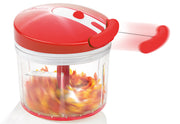 Kunststoff, Inhalt: Handzugdeckel, Messereinsatz, Mixereinsatz, Schleudersieb, Abdeckung für Schleudersieb, Frischhaltedeckel, Behälter (Fassungsvermögen: 1.000 ml), Rezeptheft, Spatel, zum Zerkleinern, Mixen, Rühren, Schleudern von Lebensmitteln, 2 einstellbare Geschwindigkeitsstufen·grün Ø 14,8 cm, H 23,6 cm