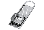 komplett aus Edelstahl (Hobel, Griff und Teigbehälter), Unterteil des Behälters aus Kunststoff gefertigt, Behälterinhalt: ca. 400 ml (LxBxH): 32,5x11x7 cm
