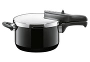 Silargan, Boden mit durchgezogenem Stahlkern, schnelle Wärmeleitung, optimale Hitzespeicherung, Abdampfautomatik, Restdrucksicherung, Sicherheitsschlitz, Überdrucksicherung, Verriegelungssperre, 3 fest einstellbare Kochstufen (Schon-, Schnell-, Dampfkochstufe), Einhand-Kochstufenregler, für alle Herdarten geeignet·schwarz 4,5 l, Ø 22 cm