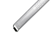 Die Reibe bietet Ihnen zwei verschiedene Reibeflächen: eine feine und eine mittlere, perfekt für eine Vielzahl von Anwendungen in der Küche, sei es zum Zubereiten von Käse, Gemüse, Obst oder Schokolade. Dank ihrer durchdachten Konstruktion mit einer Größe von 39,9 x 3,6 x 2,8 cm ist sie besonders handlich und lässt sich mühelos in der Handhabung integrieren.