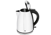 Fassungsvermögen: 1,7 l, Edelstahl-Wasserkocher, verdecktes Edelstahlheizelement, kabellos, separater Gerätesockel inkl. Kabelaufwicklung, beleuchteter Innenraum, außenliegende Wasserstandsanzeige, herausnehmbarer, abwaschbarer Kalk-Wasserfilter, gummierter, rutschfester Griff, Einhanddeckelöffnung per Knopfdruck, Trockenlauf- und Überhitzungsschutz, Kochstoppautomatik, Deckelverriegelung, 220 - 240 Volt, 50 / 60 Hz, 2400 Watt, Schukostecker CEE 7/7·edelstahl