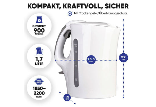 Kunststoff / Metall, Füllmenge bis zu 1,7 Liter, einfache Handhabung durch kabellose Technik – leichtes Ein- und Ausgießen, Sicherheitsklappdeckel ...