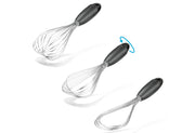 Stainless Steel / Polypropylene, spülmaschinenfest, aus einem Schneebesen werden drei – ein großer Ballonschneebesen zum Aufschlagen, ein Saucenschneebesen für flache Flüssigkeiten und ein flacher Schneebesen zum Ablöschen, lässt sich komplett flach zusammenfalten und platzsparend aufbewahren·schwarz (LxBxH): 295x76x76 mm·Fachhandel exklusiv·