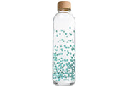 Kalk-Soda-Glas, zu 100 Prozent recyclebar, geschmacksneutral, leichte Reinigung, Schraubverschluss aus Holzfasern sowie recyclebarem und schadstofffreiem Polypropylen, auslaufsicher, da der Verschluss im Inneren mit einer herausnehmbaren Dichtungsscheibe versehen ist, alle Materialien des Verschlusses sind frei von Weichmachern, der Verschluss ist spülmaschinenfest, Druck aus schwermetallfreien UV-Farben, Druck ist für die Spülmaschine geeignet·transparent / türkis 700 ml, Ø 7,3 cm, H 26 cm