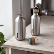 black+blum - Trinkflasche aus Edelstahl. Die besonders leichte Edelstahl-Trinkflasche im neuen Design fasst 600 ml und besitzt einen stilvollen Korkdeckel mit praktischem Tragebügel.