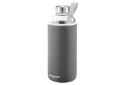 Glas / Silikon, abnehmbares Soft-Cover schützt vor Beschädigungen, dichtschließend, auslaufsicher, passend für jede To-Go-Gelegenheit, ob Sport, Freizeit oder Arbeit, leicht zu reinigen, Glas-Behälter spülmaschinenfest·grau 1 l