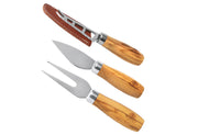 Schickes Käsemesser-Set mit zwei Käse-Messern und einer Käsegabel, die Griffe sind aus hochwertigem Olivenholz und die Klingen aus rostfreiem Edelstahl. handgefertigte Stücke aus naturbelassenem Olivenholz mit feinen individuellen Maserungen machen jedes Stück zum Unikat.