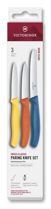 VICTORINOX Gemüsemesser Set gerade/Wellen gelb/orange/blau 3teilig