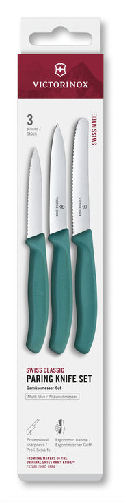 VICTORINOX Gemüsemesser Set gerade/Wellen grün 3teilig