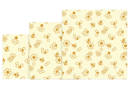 organische Baumwolle / Bienenwachs / Kokos Öl / Baumharz, mit Honigwaben-Muster, Inhalt: je 1 x (LxB): 18x20 cm, 25x28 cm, 33x35,5 cm, wiederverwen...