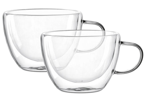 View full detailsBorosilikat-Glas, doppelwandig, handgefertigtes Unikat, hitzebeständig, maximal 100°C, spülmaschinengeeignet, mikrowellengeeignet Füllvolumen je 36...