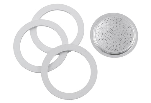 3 Dichtungsringe + 1 Filtersieb für Aluminium Espressokocher 6 Tassen, Außendurchmesser Dichtungsringe: 72 mm·Fachhandel exklusiv