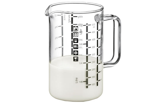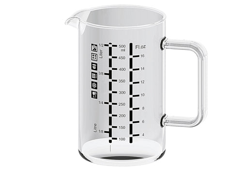 Glas, mit Skala, mit Henkel, hitzebeständig: +300°C / -40°C - geeignet für Mikrowelle, Geschirrspüler und Gas- und Elektroherde 500 ml, (HxBxT): 13...