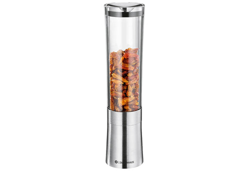 Edelstahl / Acryl, Schneidmahlwerk aus Edelstahl, zerkleinert auch Kräuter, auf dem Aromaschutzdeckel steht die Mühle sicher und krümelfrei, einfac...