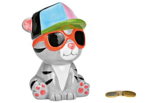 Keramik, sitzende Haltung, Sonnenbrille und Kappe· (BxHxT): 11x16x10 cm