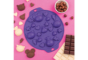 Silikon, für 21 verschiedene Motive, strapazierfähiges Material, zur Herstellung von Schokolade, Bonbons, Eiswürfel & Seife, beständig gegen Temperaturen von -40 bis 230°C,·lila