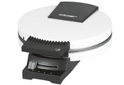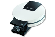 Metallgehäuse, extra schwere Ausführung, Antihaftbeschichtung, stufenlose Temperatureinstellung, 5 Temperaturstufen, Aufheiz-Kontrollanzeige, Backzeit-Kontrollleuchte, akustisches Backzeitende-Signal, Kabelaufwicklung, Steckerdepot, Waffel Ø 15 cm, 800 Watt, Schukostecker CEE 7/7·weiß