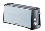 für 4 Toastscheiben, wärmeisoliertes Chromgehäuse, integrierter Brötchenaufsatz, elektr. Röstzeitsteuerung, 6 Röstgradstufen, Röstunterbrechung möglich, Krümelschublade, Stopptaste, Sensorelektronik, Sicherheitsabschaltung bei Verklemmen des Toastes, Nachhebevorrichtung, stufenlos wählbarer Bräunungsgrad, 1285 Watt, Schukostecker CEE 7/7·chrom matt/schwarz