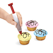 Dekorationsstift. Kinderleicht zu handhaben ist dieser Stift beim Dekorieren von Speisen und Serviertellern. Durch leichten Druck auf die Seiten des Silikonkörpers können Sie fein justieren. Das Vakuum, welches beim Befüllen entsteht, zieht die Flüssigkeit beim Lösen des Drucks sofort wieder zurück, so dass Sie leicht auch nur Punkte setzen können. Lassen Sie Ihrer Phantasie freien Lauf und peppen Sie Servierteller, Teige, Desserts und Getränke auf wie ein Profi. Mit der roten Reduziertülle haben Sie eine 1 mm Schriftbreite und ohne 3 mm. Nachfüllen einfach wie das Aufziehen einer Spritze. Spülmaschinenfest. Füllmenge: 16 ml.