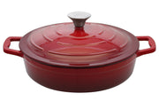 Gusseisen / Deckel mit Edelstahlknauf, innen cremefarben emailliert, außen rot emailliert, Wandstärke ca. 5 mm, Bodenstärke ca. 6 mm, für alle Herdarten geeignet, scharfe und krosse Zubereitung, optimale Wärmeleitung, backofenfest bis 240°C, säurebeständig, leicht zu reinigen, spülmaschinengeeignet·rot 3 l, Ø 28 cm, H 9,5 cm
