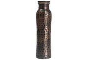 Hergestellt aus 99,7% lebensmittelechtem Kupfer, dunkles gehämmertes Vintage-Finish, äußere Schicht lackiert für glänzende Oberfläche und einfache Pflege, 100% schwermetallfrei, frei von Giftstoffen, einwandig, nur für stilles Wasser, auslaufsicher durch Silikonring. Lagern Sie Ihr Trinkwasser über Nacht oder über einen Zeitraum von 8 Stunden, um sich am maximalen Nutzen von angereichertem Wasser zu erfreuen. Dieses mit Kupfer angereicherte Wasser ist alkalisch und bietet gewisse Vitalitätsvorteile laut Ayurveda. Reinigungstipps: Geben Sie einen Esslöffel Zitronensäurepulver oder Entkalkerpulver in die Kupferflasche. Gießen Sie heißes Wasser ein und lassen Sie es ein paar Minuten stehen. Gut schütteln und ausspülen. Ihre Kupferflasche wird von Innen heraus wie neu glänzen. Reinigen oder schrubben Sie die Flasche nicht von Außen. Die Lackschicht könnte sich ablösen. Handwäsche empfohlen, nicht spülmaschinengeeignet.·dunkles Kupferfinish 900 ml, Ø 7 cm, H 27,5 cm